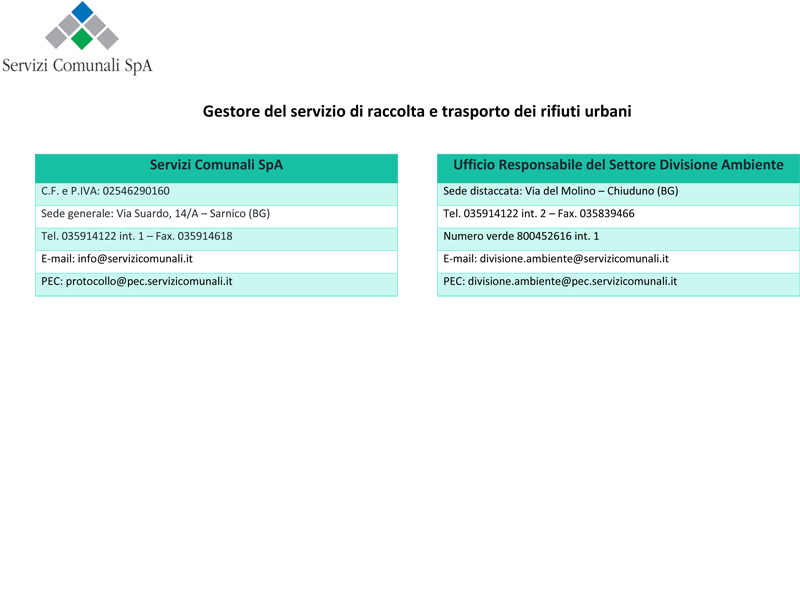 Sportello Rifiuti presso SERVIZI COMUNALI SPA via del Molino - Chiuduno