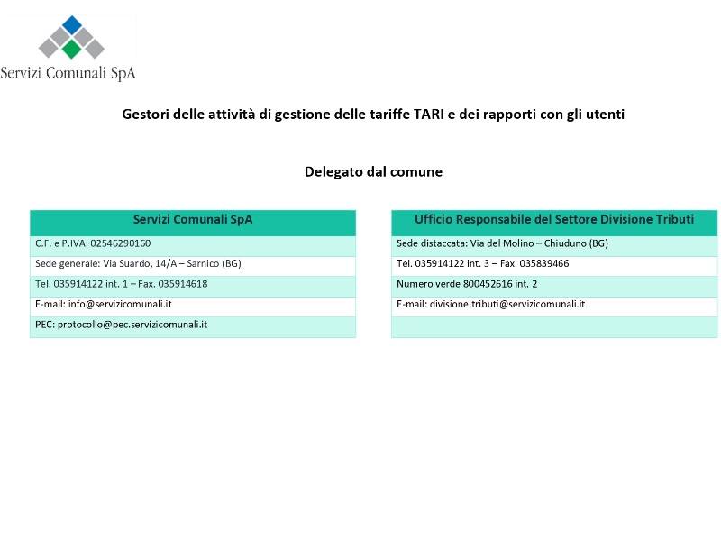 Sportello TARI presso SERVIZI COMUNALI SPA via del Molino - Chiuduno